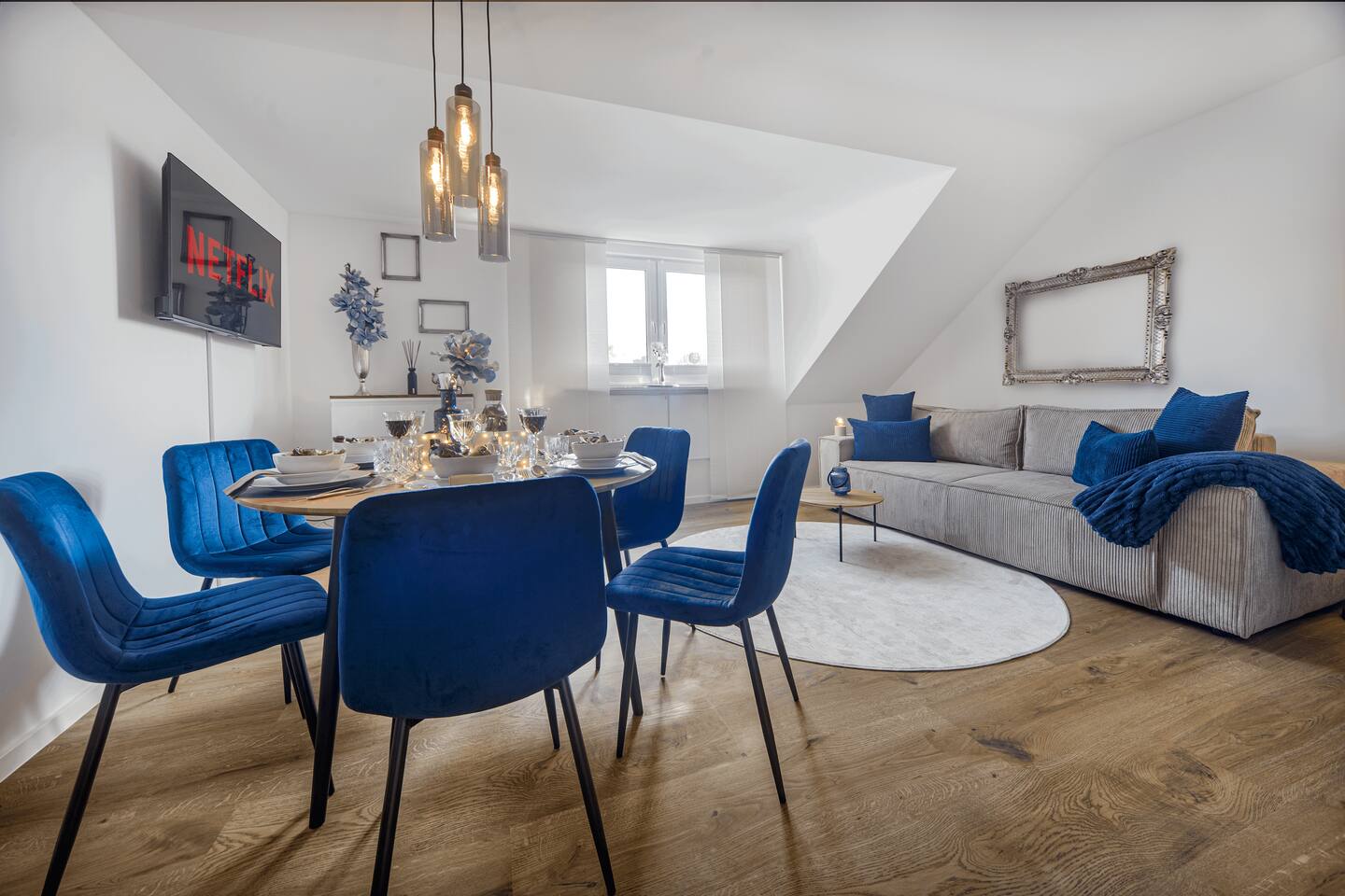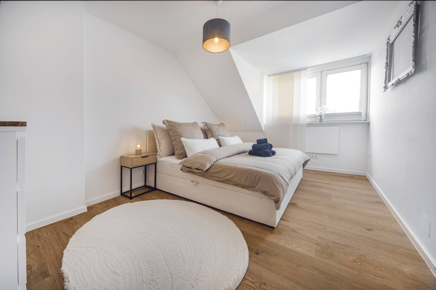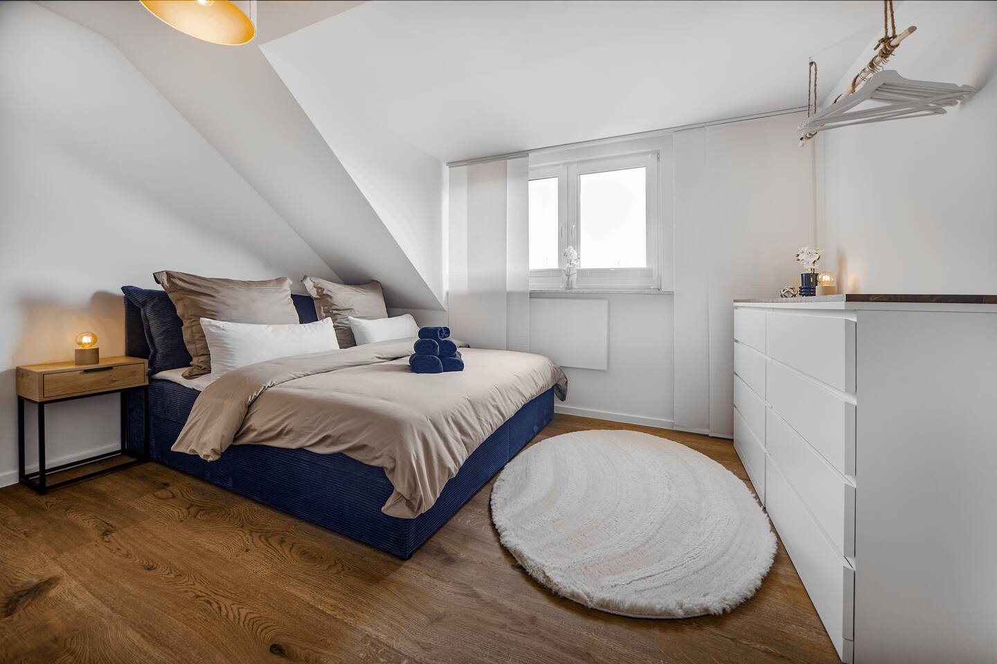 Welcome to your Exquisite Superior Suite – stylish, quiet and perfectly located near Messe Essen and the city center. This bright 3-bedroom apartment features high-quality beds, a fully equipped kitchen, Smart TV with Netflix & Prime, and high-speed Wi-Fi. Whether you're visiting for business, family or a city break – enjoy modern comfort with thoughtful design and attention to detail. We look forward to seeing you. Julius and Gerardine