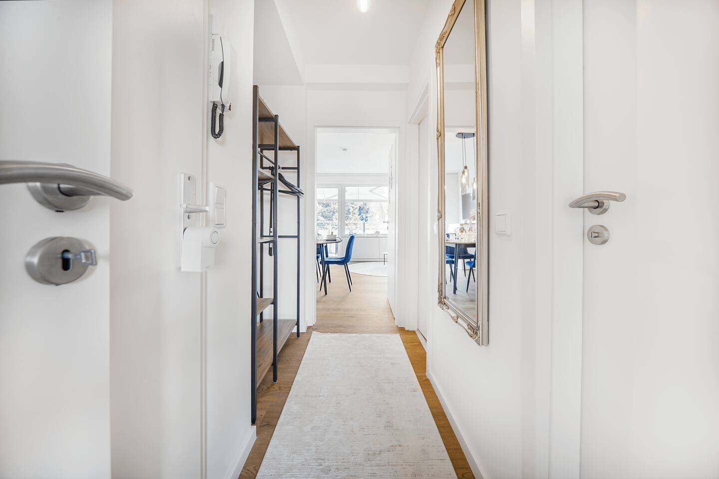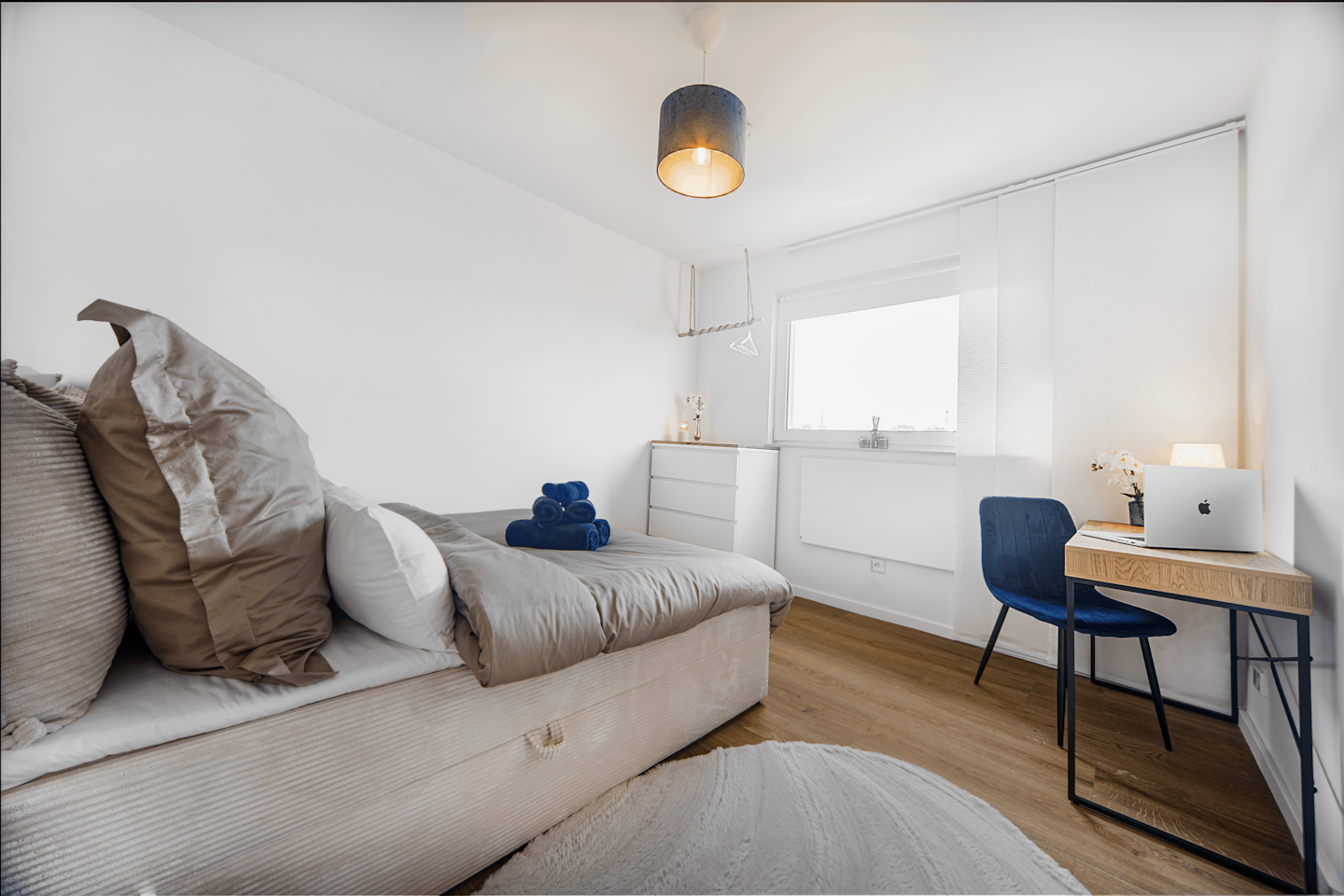 Welcome to the Excellence Deluxe Suite – your stylish hideaway in the heart of Essen. This modern apartment features a quiet bedroom, elegant living room with Smart TV & streaming, a fully equipped kitchen, and fast Wi-Fi. Perfect for business travelers, couples, or long-term guests who appreciate comfort, design, and peace. We guarantee that you'll feel right at home with us, as you won't be missing anything. We look forward to seeing you. Julius and Gerardine from PME