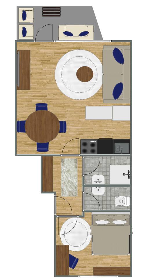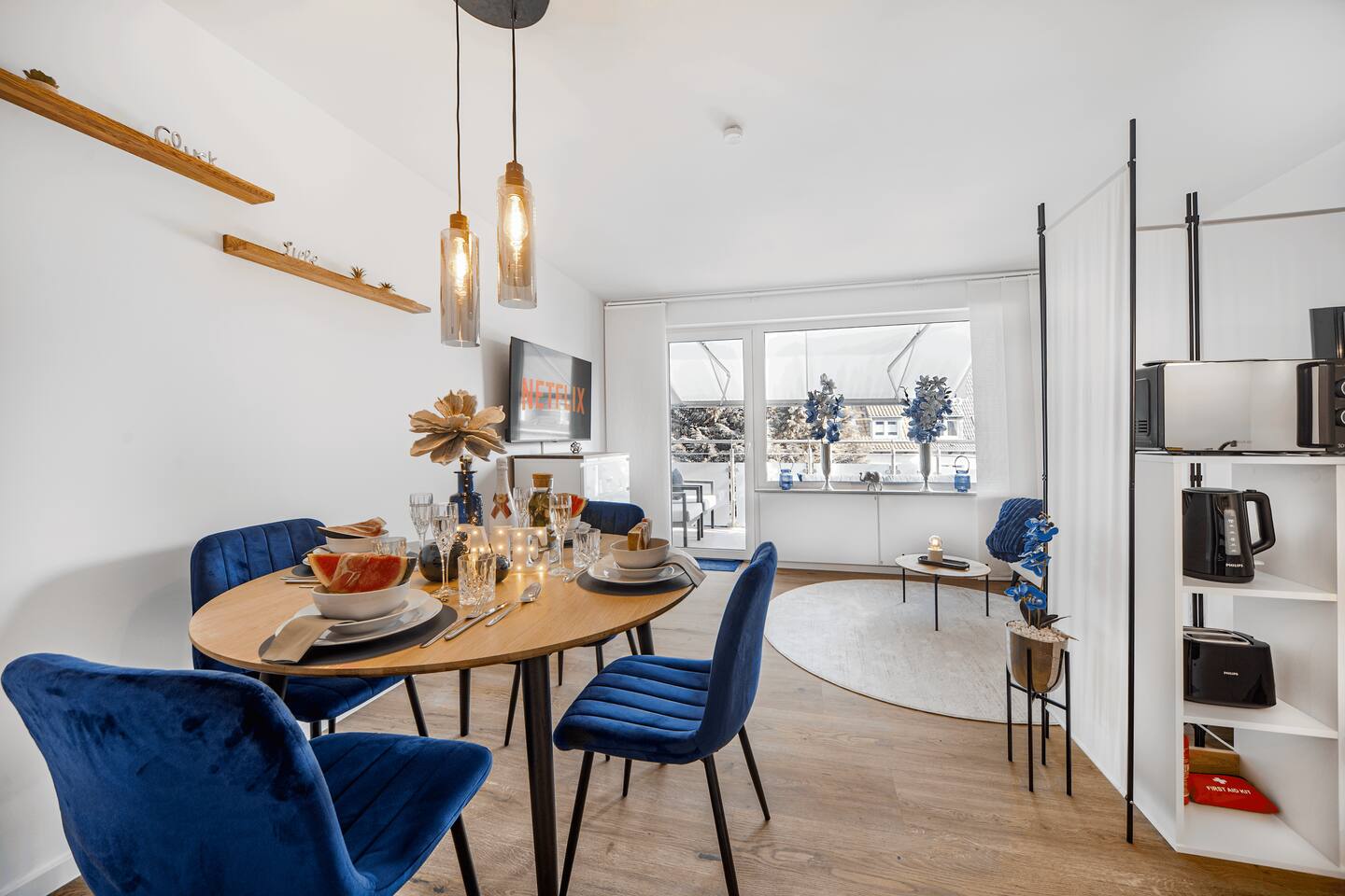 Enjoy your stylish home away from home. You'll find a quiet bedroom with a premium mattress, a bright living area with a cozy sofa, dining space, Smart TV, a fully equipped kitchen, and a modern bathroom. Everything is designed for comfort, cleanliness, and convenience – so you can feel at home instantly.